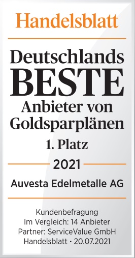 Auvesta Edelmetalle AG „Bester Anbieter von Goldsparplänen“ beim HANDELSBLATT