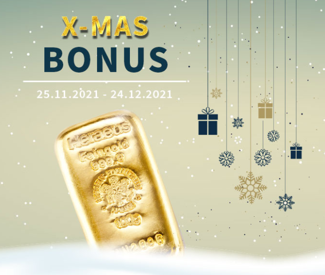Der X-mas-Bonus wird dem Edelmetalldepot des Kunden am Folgetag des Kaufes in Form von Bruchteileigentum an einem Edelmetallbarren oder einer Anlagemünze gutgeschrieben. Der Rechtsweg für die Prämien-Aktion ist ausgeschlossen.