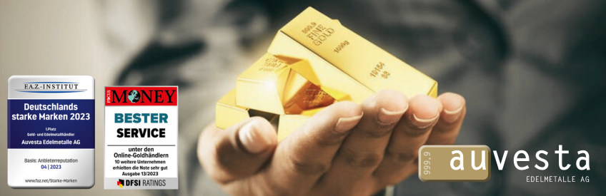 Die Auvesta Edelmetalle AG, mit Sitz in Holzkirchen, wurde mit dem begehrten Preis “Hohes Kundenwohl 2023” in der Kategorie Gold- und Edelmetallhändler von der Frankfurter Allgemeinen Zeitung (FAZ) ausgezeichnet.
